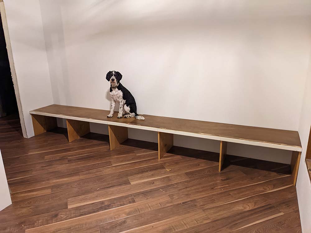 Spending just a little more than $200, Amy purchased enough cabinetry to create closet shelves, a built-in bench, and additional storage. Bonus, Amy scored a barn door at the ReStore that was salvaged from a barn deconstruction that our ReClaim program worked on.